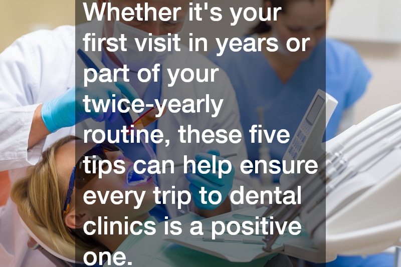 Whether it’s your first visit in years or part of your twice-yearly routine, these five tips can help ensure every trip to dental clinics is a positive one.